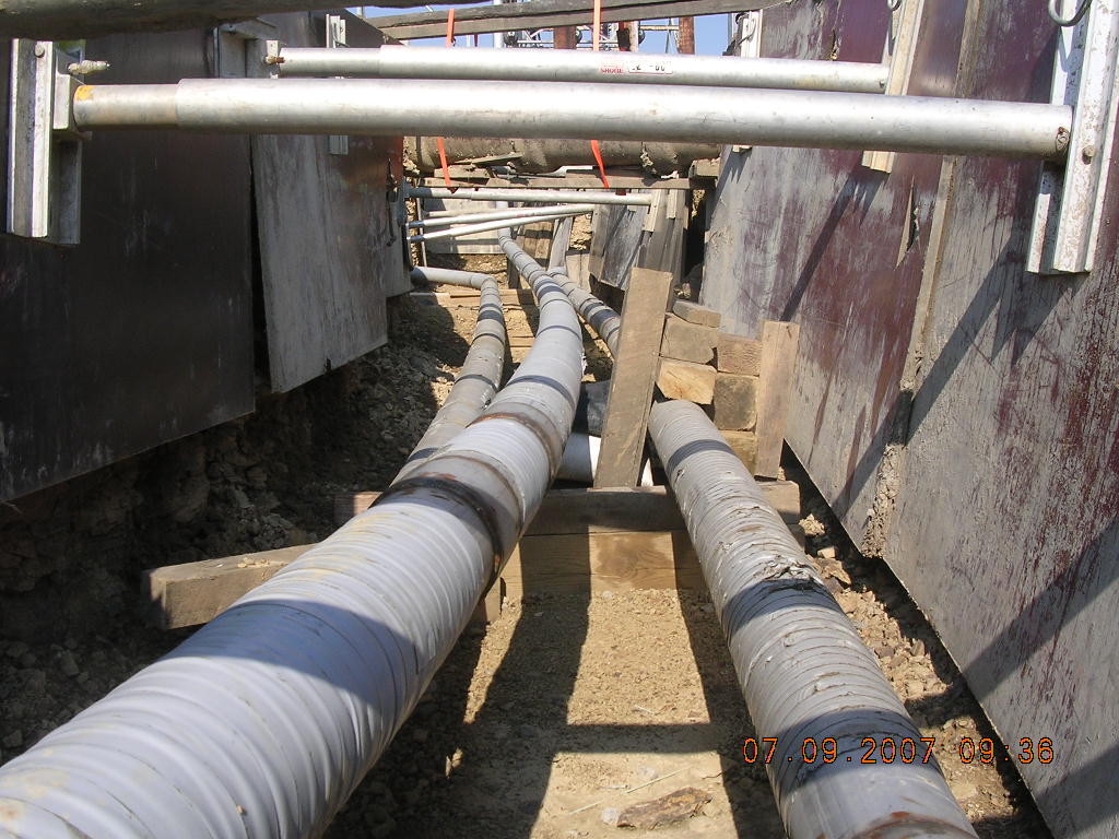 Previous ImageNext Image C050160_Arsenal_to_Highland_Substation-2 345kV Stainless Steel phase conduits in radius approaching termination . Photo#12 Showing scuff on coating tape and difficulty in routing severe bends.
